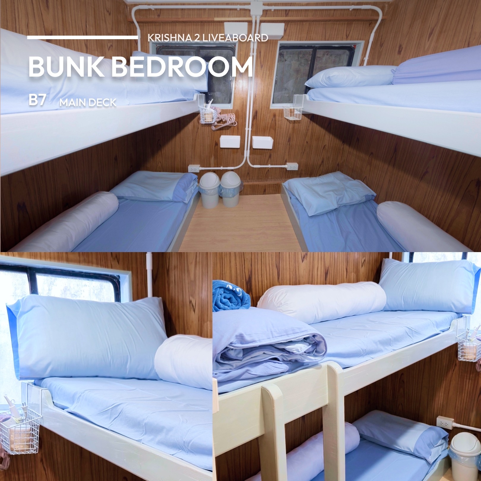 This cabin is on the main deck alongside the dive deck, this cabin features bunk beds, offering a sense of privacy, especially for solo travelers. The windows provide a clear and picturesque view, making your stay comfortable and enjoyable.